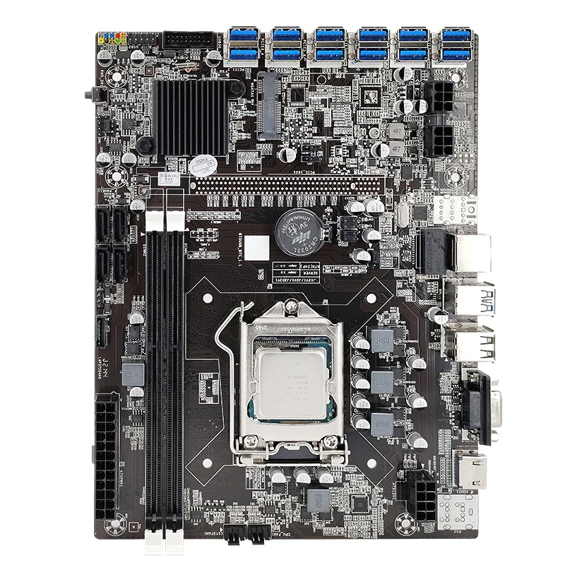 Carte mère avec processeur intégré avec 8 ports PCIE pour carte graphique. 1. Dimensions 470x195mm 2. Chipset Intel HM65 3.