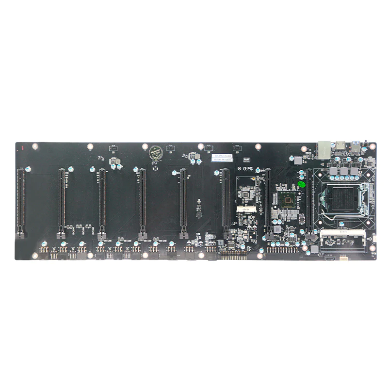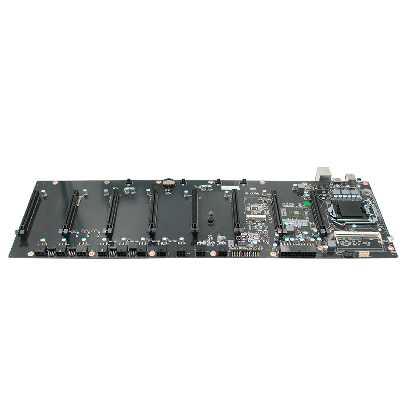 Carte mère avec processeur intégré avec 8 ports PCIE pour carte graphique. 1. Dimensions 470x195mm 2. Chipset Intel HM65 3.