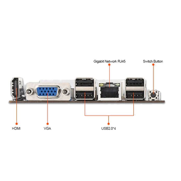 1.Socket processeur : support LGA1150 2.Ram :1*DDR3/DDR3L SO-DIMM(jusqu’à max 8GB) 3.Ports:1*1000Mbps Ethernet, 2*USB2.0, 2*USB3.0, 2*SATA, 1*MSATA 4.Ports alimentation:8*6pin PWR-IN,8*6pin PWR-OUT,5*4pin