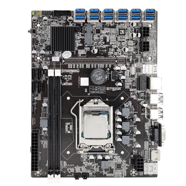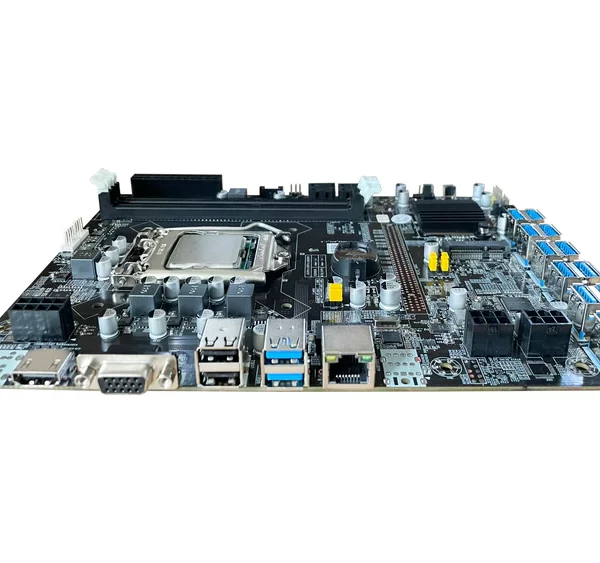 1.CPU Socket: support LGA1155 CPU 2.Ram :2*DDR3/DDR3L (jusqu’à 8go), 3.Ports:1*1000Mbps Ethernet,2*USB2.0,2*USB3.0,4*SATA,1*MSATA, 4.Ports alimentation:2*6pin/ATX 24PIN, 5.Ports PCIE:12*USB3.0, 6.Dimensions : 190*394mm, 7.Packing